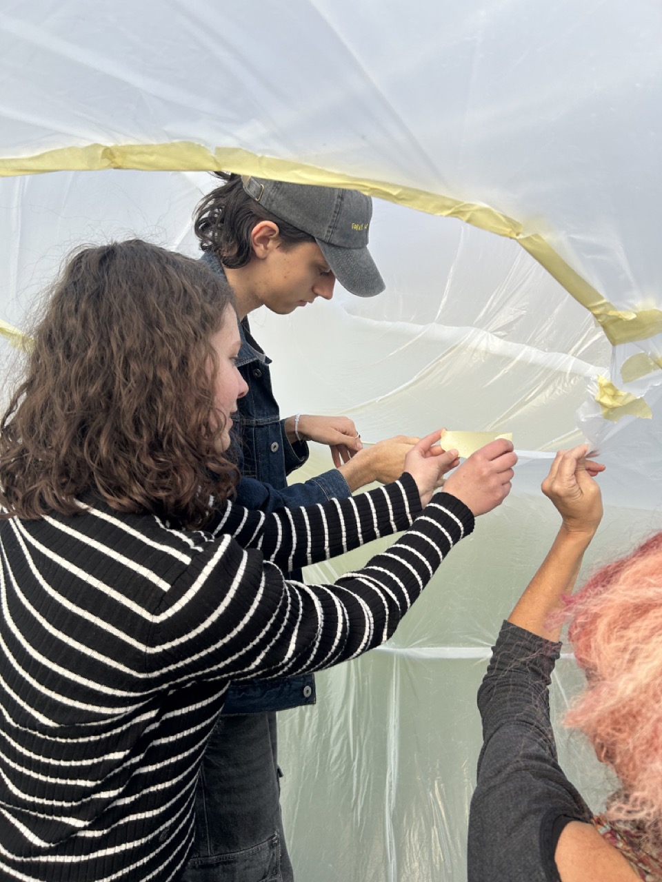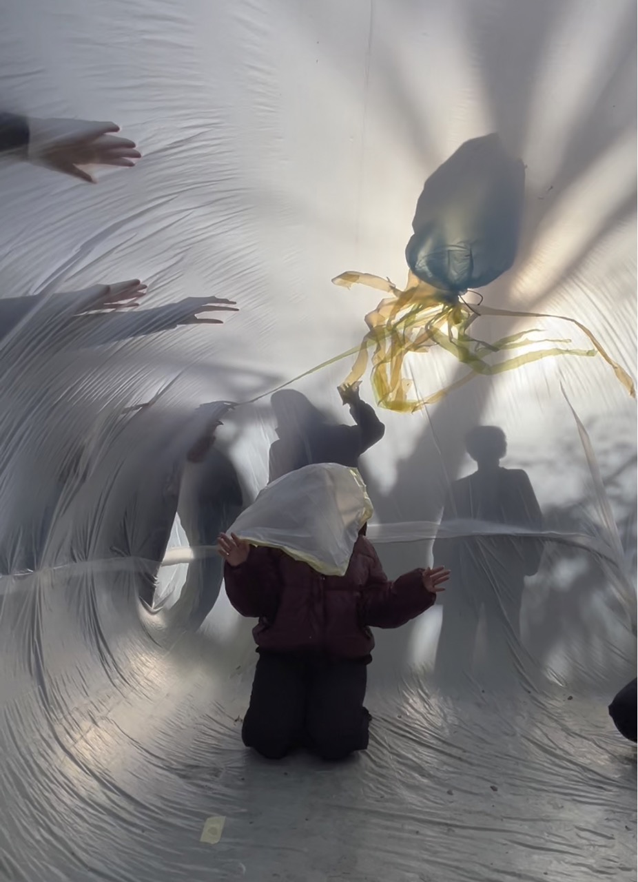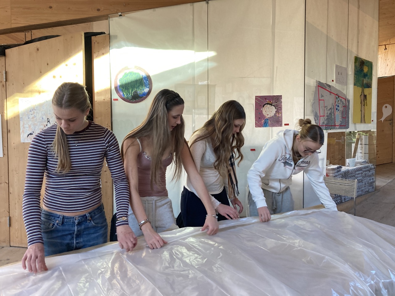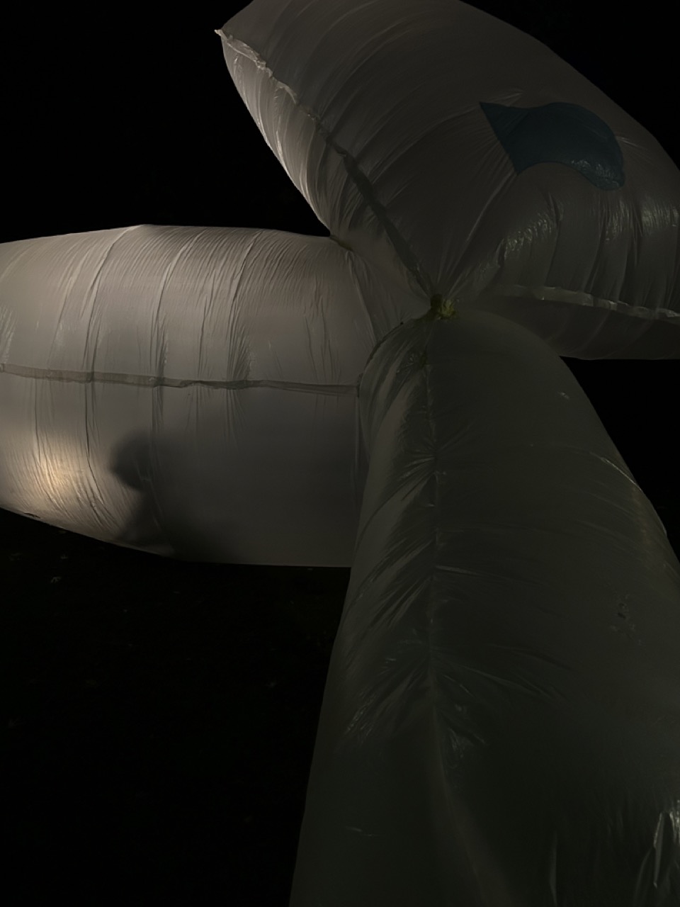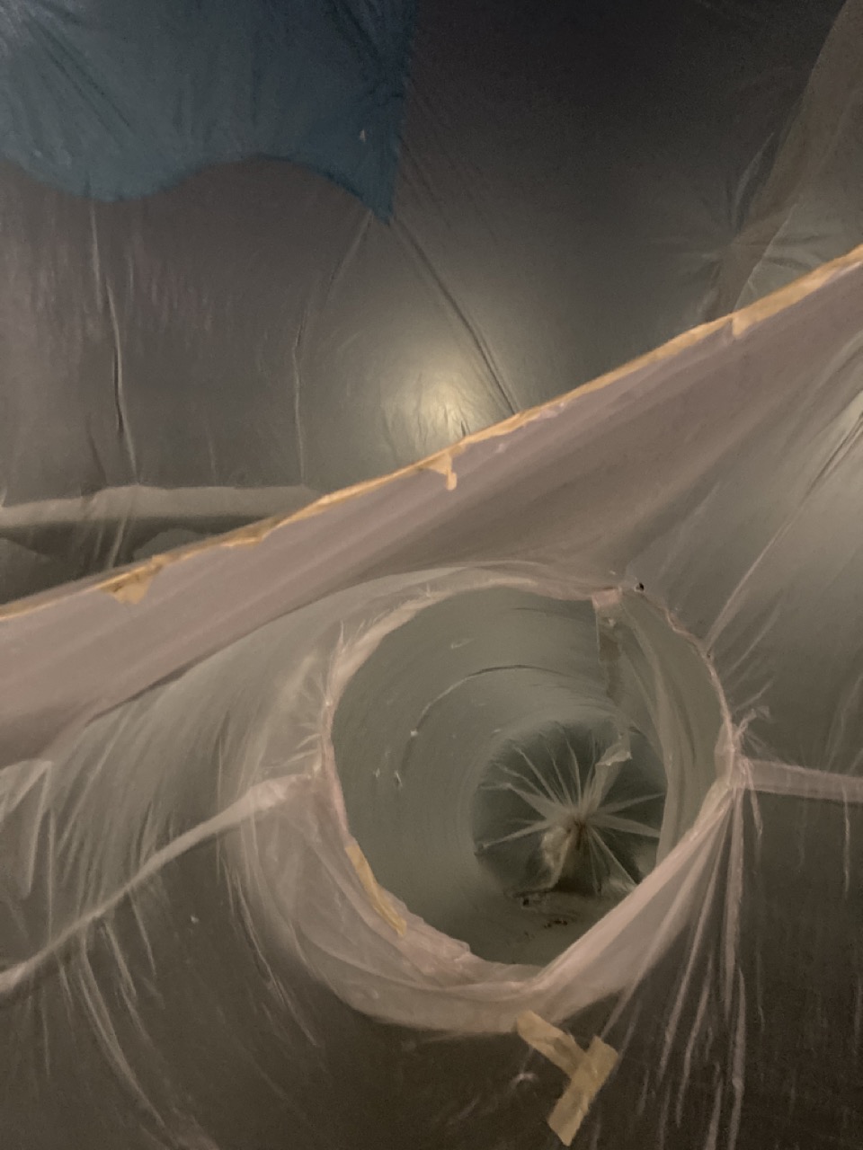 In zahlreichen Workshops vom 6.11. bis 14.11. mit hands on – Bauaktionen und kreativen Raumexperimenten konnten Schulgruppen aus ganz Tirol praktische Erfahrungen zu inflateable architecture, entsprechende Materialien und Bauweisen dazu erleben. Von Workshop bis Workshop wurde alles Wissen zu Pneu, Luftdruck und Dimension gesammelt und die Rauminstallation immer größer. Schüler:innen der HBLA Innsbruck haben das Projekt „wir brauchen Raum“ mit einer über mehrere Tage gewachsenen aufblasbaren Membranarchitektur abgeschlossen.