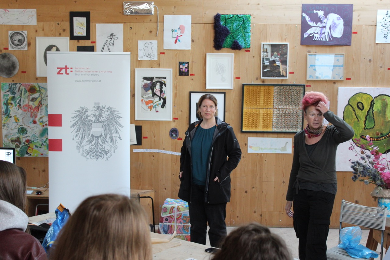 Die Schlussveranstaltung wurde von Dipl.-Ing. Regina Mayer, MA, Vorsitzende-Stellvertreterin der Sektion Zivilingenieur:innen sowie Ingenieurkonsulentin für Kulturtechnik und Wasserwirtschaft und Ingenieurkonsulentin für Mountain Risk Engineering (Aldrans), DI Jan Gillis, Universität Innsbruck, Fakultät Architektur sowie Mag. ARCH Monika Abendstein, Leitung bilding, Kunst- und Architekturwerkstatt für Kinder und Jugendliche begleitet.