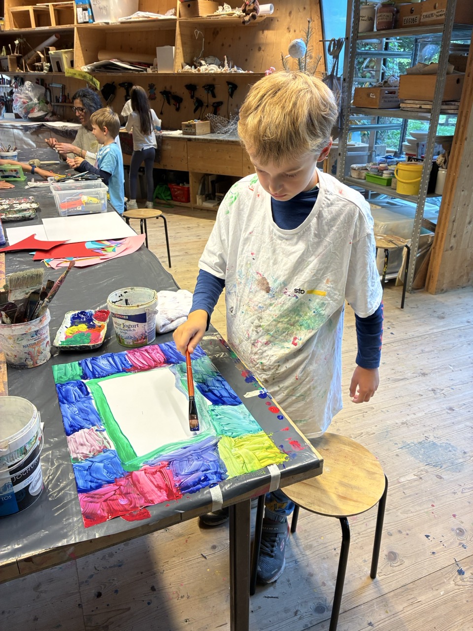 Die Basiswerkstatt vermittelt die Inhalte und Arbeitsweisen von vier Werkstätten. Ausgehend von der Malerei über Architektur und Design, Bildhauerei bis hin zu Film und Medien führt das Programm durch verschiedene Themen und Gestaltungsräume. Jede Werkstatt wird dabei einen anderen Zugang erarbeiten und verschiedene künstlerische Ausdrucksformen entwickeln. Der Vielfalt in Material und Form sind keine Grenzen gesetzt und über das Kennenlernen der verschiedenen Sparten können individuelle Schwerpunkte entdeckt und für zukünftige Programme gesetzt werden.