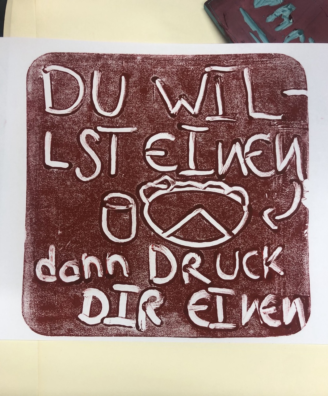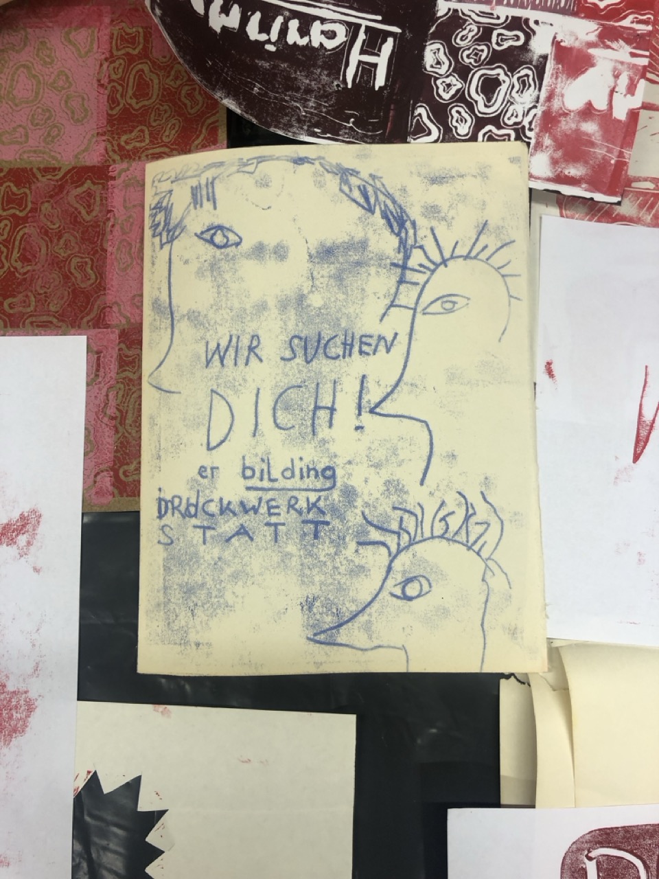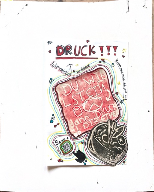 Was gesagt, gedacht, gesungen, gezeichnet oder geschrieben werden kann, kann und muss manchmal auch gedruckt werden. Ob wir drucken, weil es alle Flugblätterweise wissen sollen oder weil wir es eben einfach nur selber wissen wollen. Was wir zu sagen haben wird vielleicht eindrücklicher, manchmal lustiger, komisch verkehrt, ziemlich schräg und sicher anders als erwartet. Ob auf Papier oder anderen Materialien – mit unseren vielseitigen Werkzeugen und Maschinen zu experimentieren wird uns eine Fülle von überraschenden Möglichkeiten eröffnen.