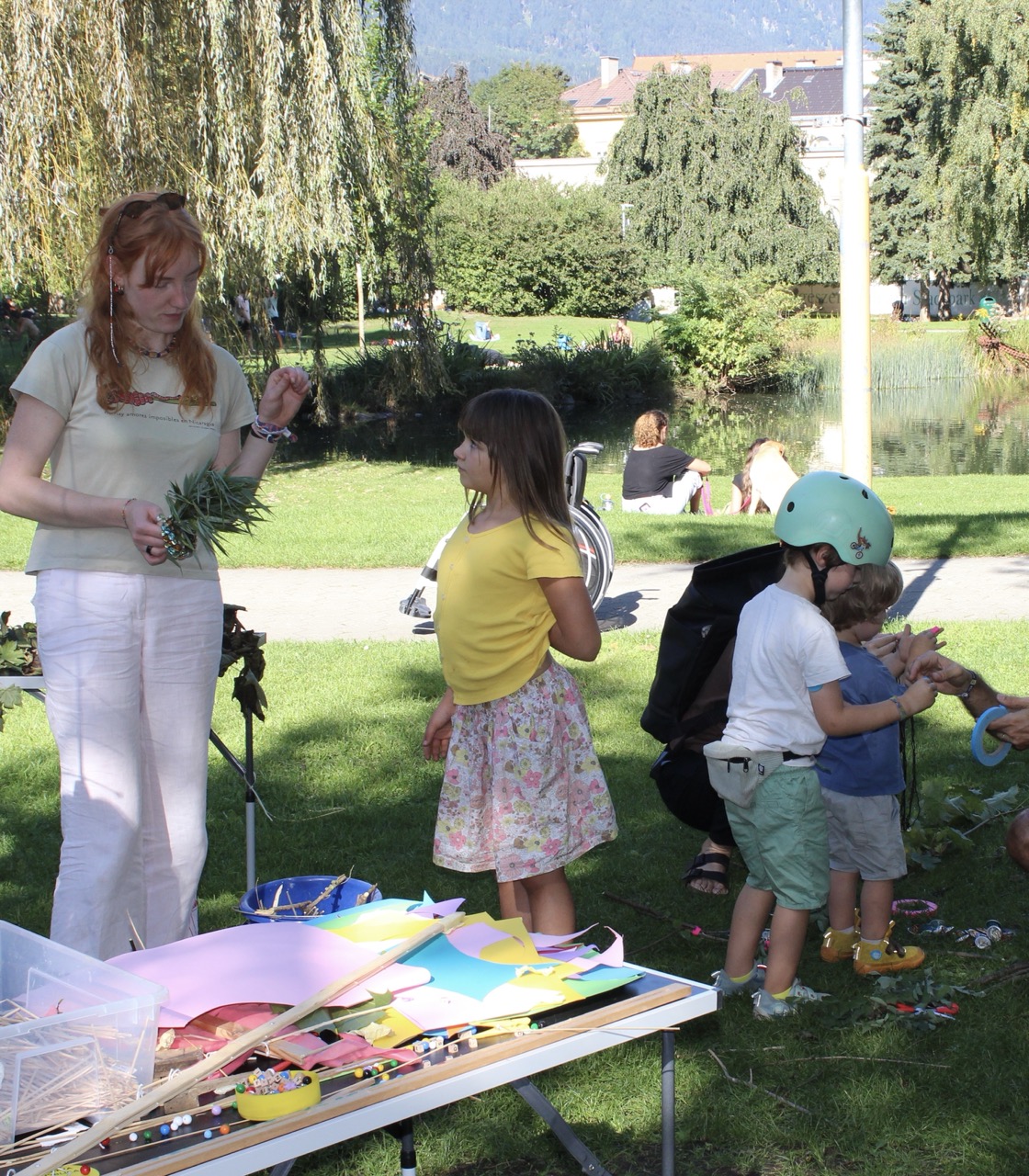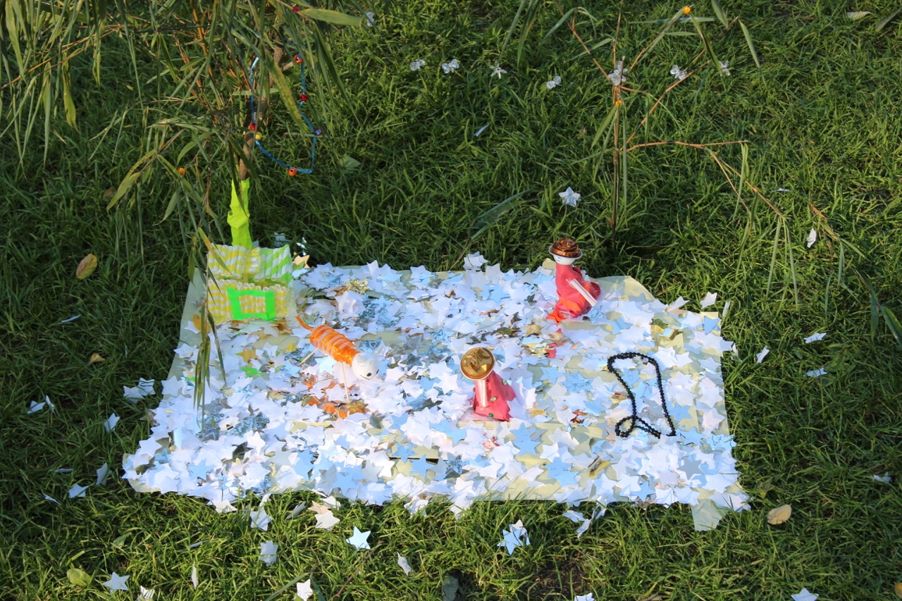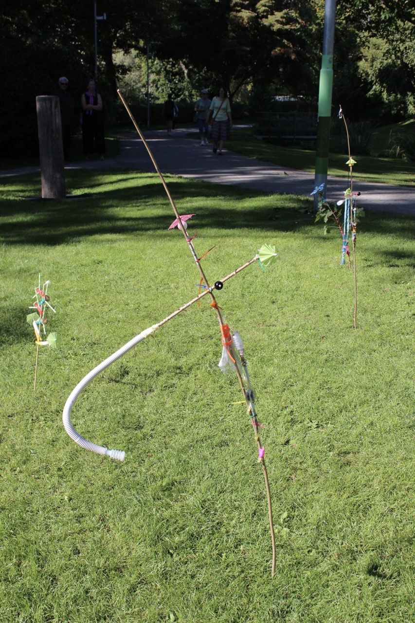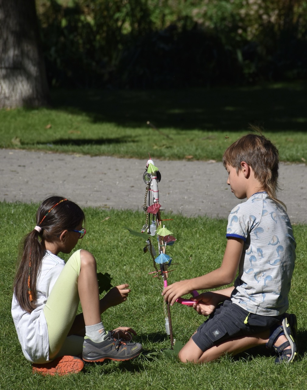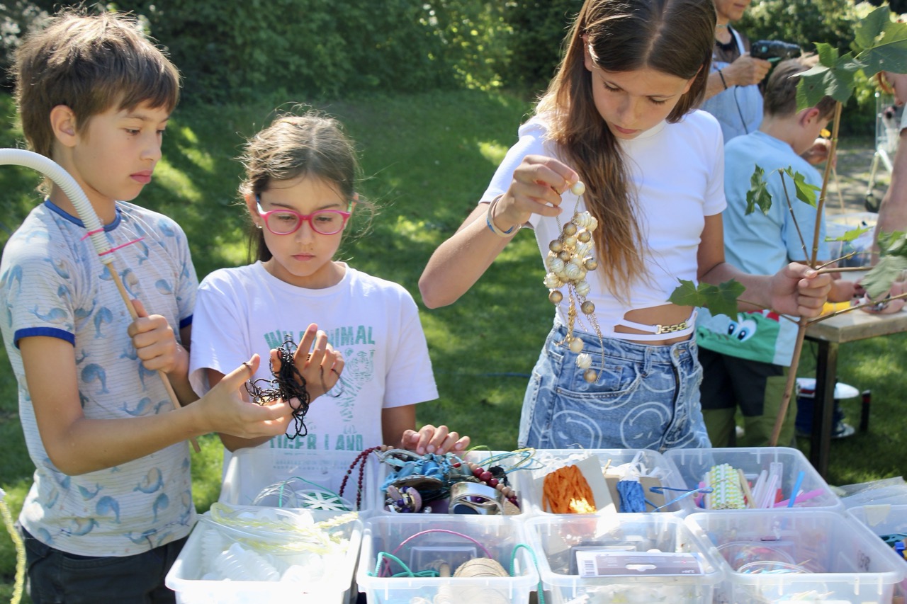 Das bidling schlägt Wurzeln. Die Baumaterialen aus dem bilding werden von den Workshopteilnehmer*innen mit den Naturmaterialien aus dem Rapoldipark zu neuen Hybriden verbunden und in den Park gepflanzt, um als kollektive Veränderungsprozesse aus dem bilding hinaus in die Stadt zu wachsen.