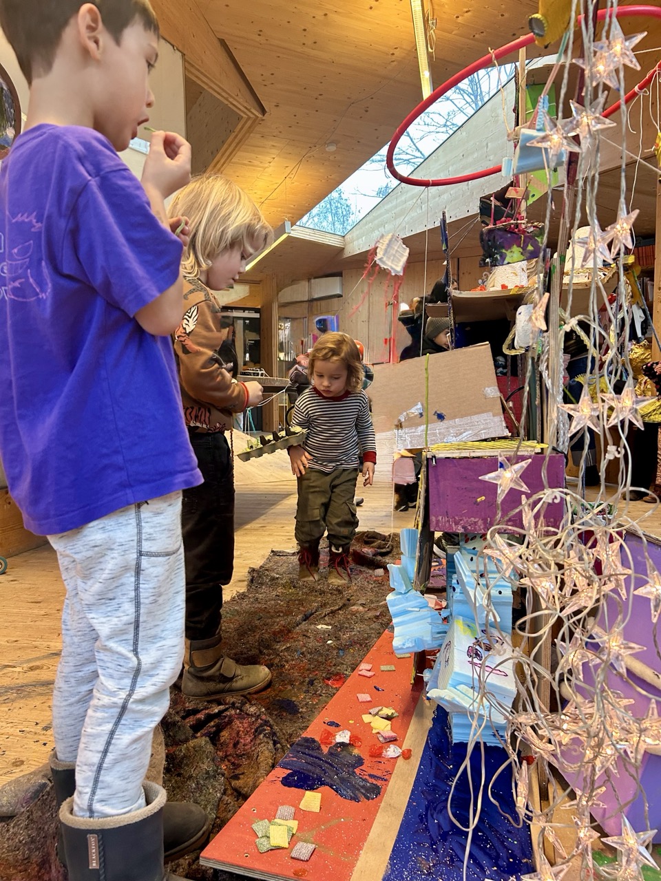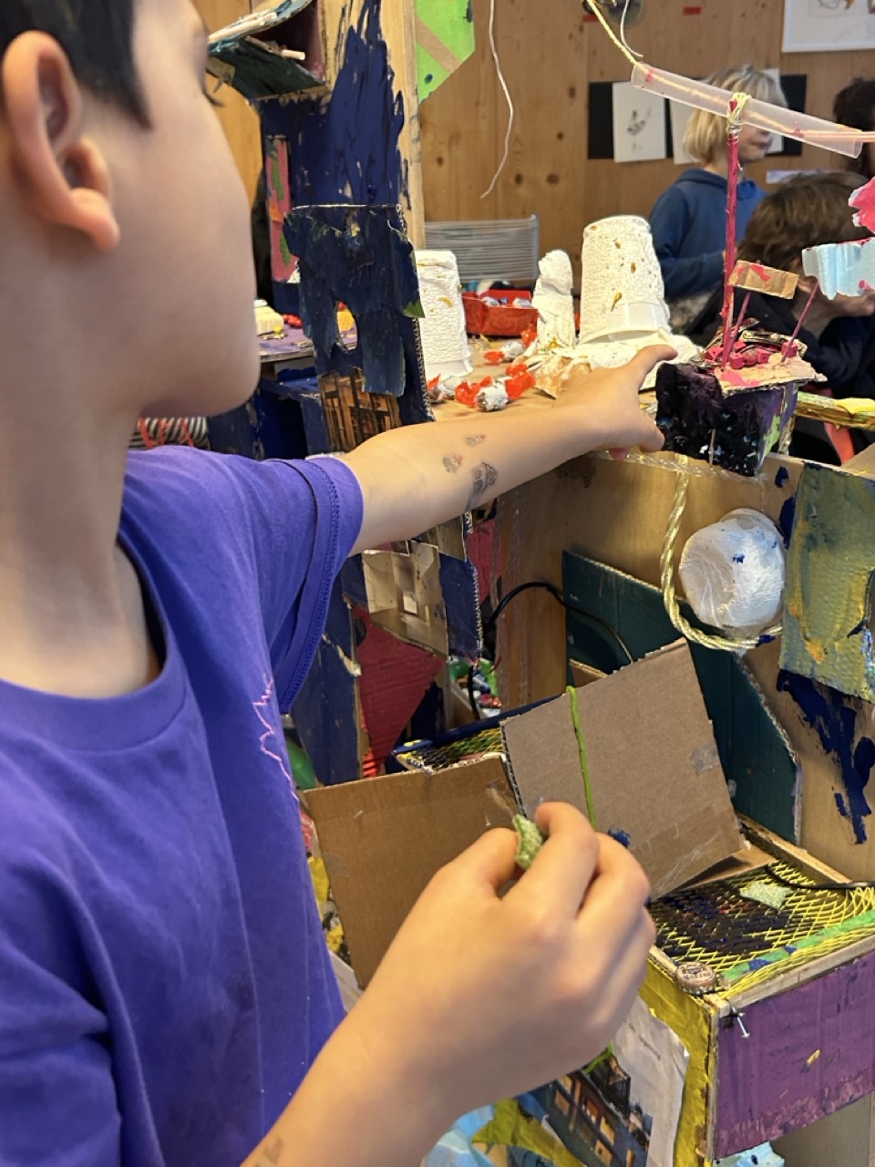 Über Geschichten, räumliche Experimente im Maßstab 1:1 und das Bauen von Modellen mit unterschiedlichsten Materialien lernen die Kinder auf spielerische Art und Weise Themen der Architektur wie Raum und Licht, Form und Material, Maßstab und Proportion oder Zeit und Bewegung kennen. Kleine Alltagsgeschichten bieten den Kindern einen emotionalen Einstieg in diese Themen. Sie werden mit ausgewählten räumlichen Situationen vertraut gemacht, experimentieren mit Holz, Gips, Karton, Stoff und anderen Materialien. Gemeinsam bauen wir uns Raum um Raum und bespielen diese.