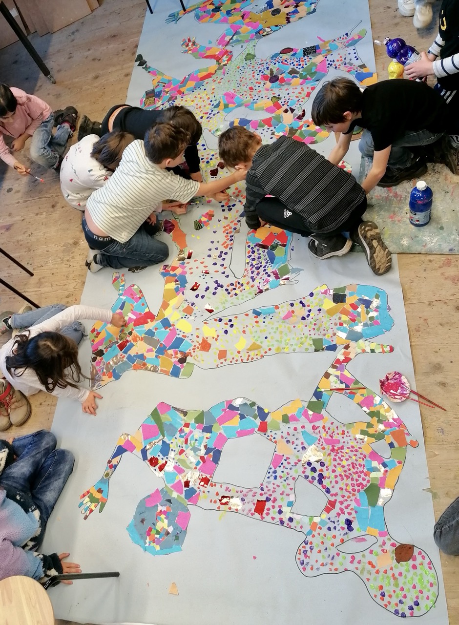 Die Kleine Basiswerkstatt eröffnet die Möglichkeit, sich über einen längeren Zeitraum mit einem Thema oder einer künstlerischen Technik intensiver auseinander zusetzen. Von der Malerei über skulpturales und räumliches Arbeiten werden wir verschiedene gestalterische Arbeitsweisen entdecken und experimentell vertiefen. Das miteinander Schaffen steht im Vordergrund, wir werden die fantastische Vielfalt eines jeden einzelnen kennen lernen und zu einer kollektiven Formen-, Farben- und Raumwelt entwickeln. Wir haben den Freiraum dazu und werden ihn nutzen.