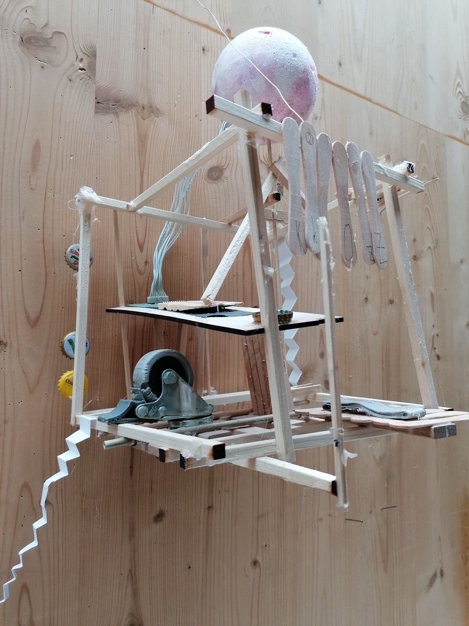 … hüpft weiter und hinaus durch einen kleinen Spalt in der Skulptür …
