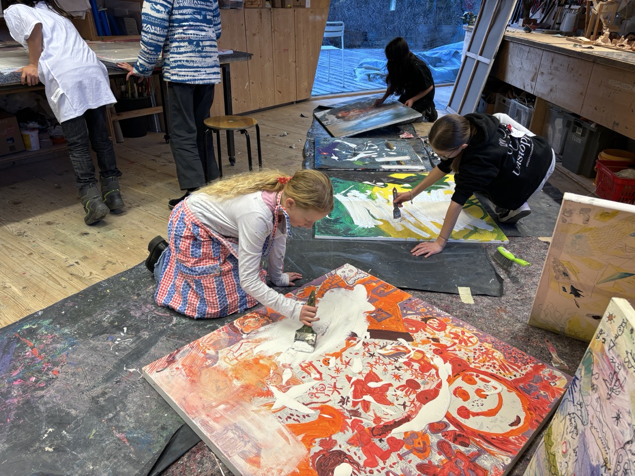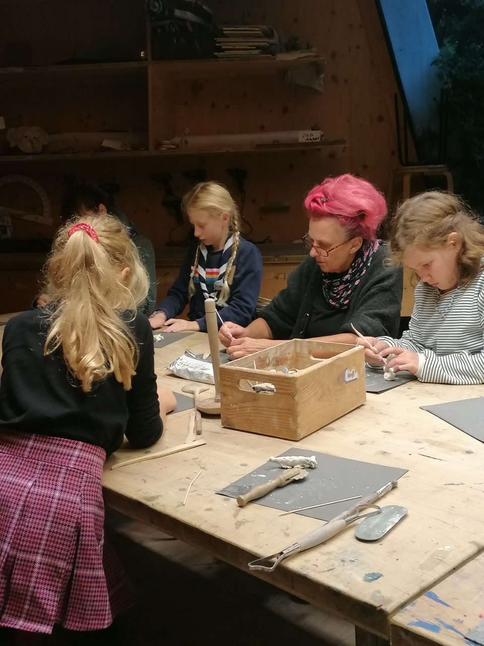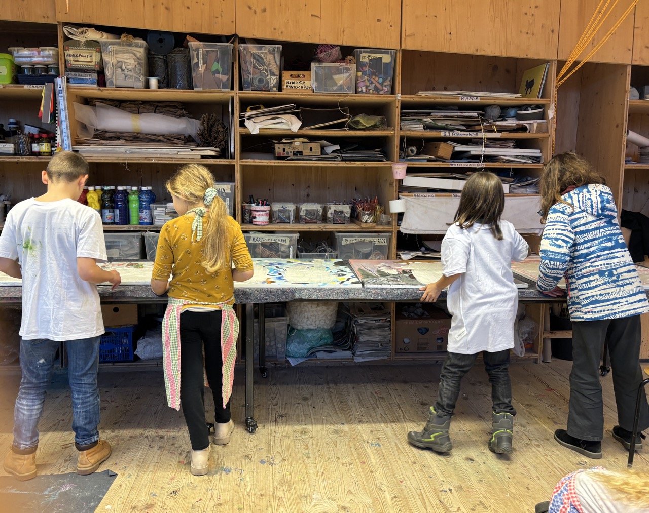 Kein Programm aber Raum, Material und Zeit. Wir schöpfen aus Interesse am Gestalten. Die Werkstatt ist unser Atelier, ob Kind, Jugendlicher, KünstlerIn oder ArchitektIn. Wir arbeiten miteinander oder jeder für sich, malen und bauen und lernen, wer wir sind und was wir tun.