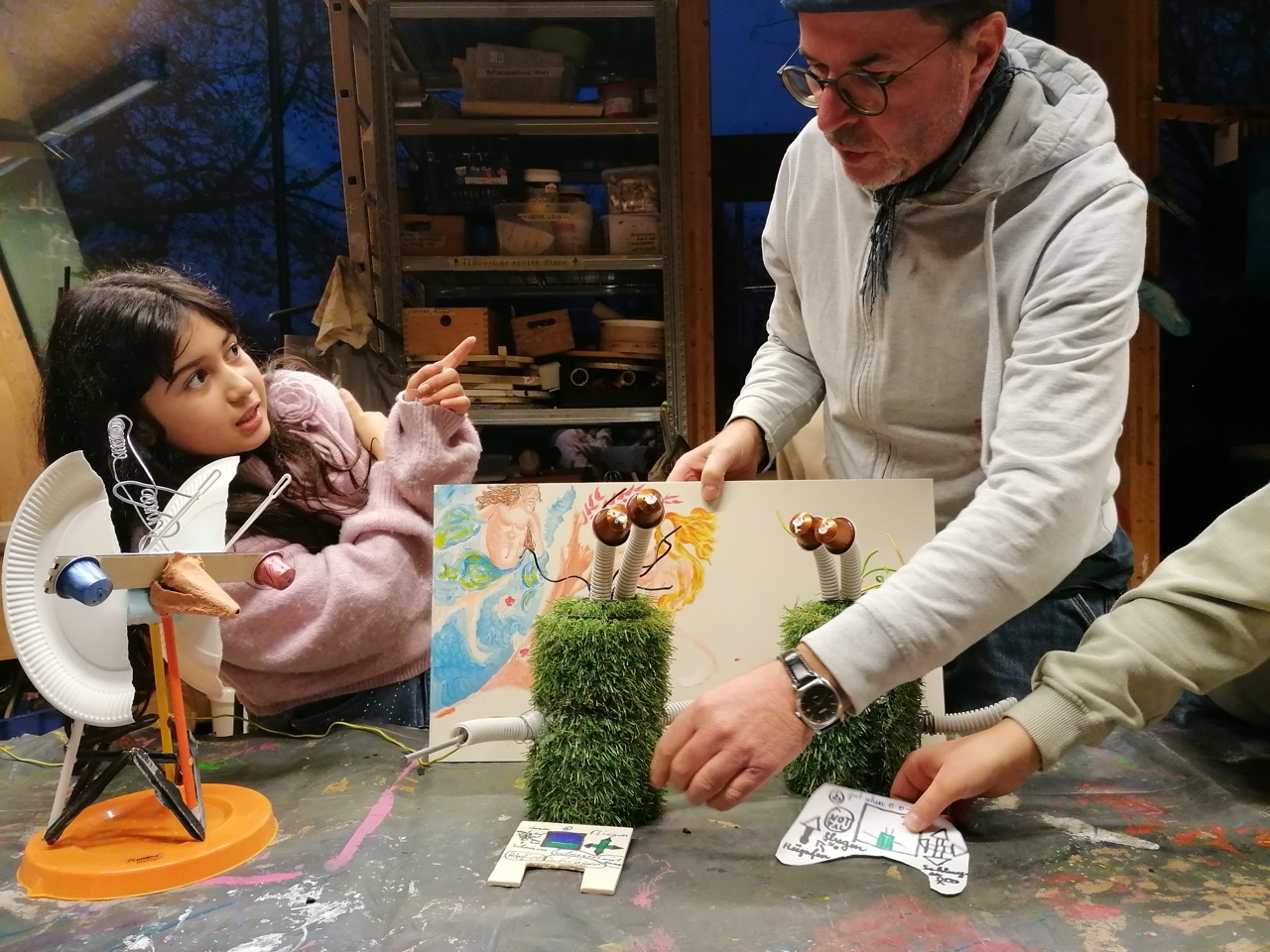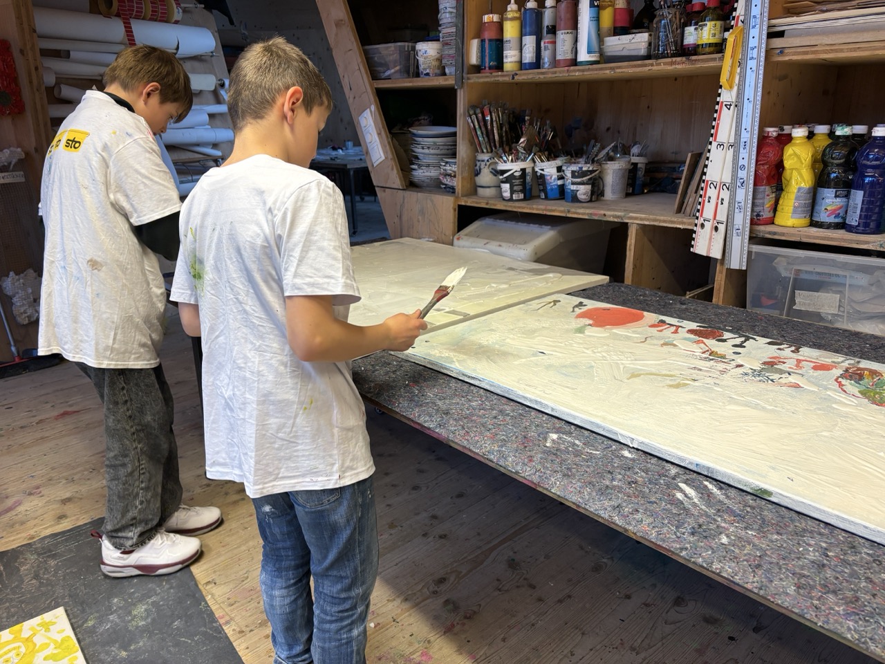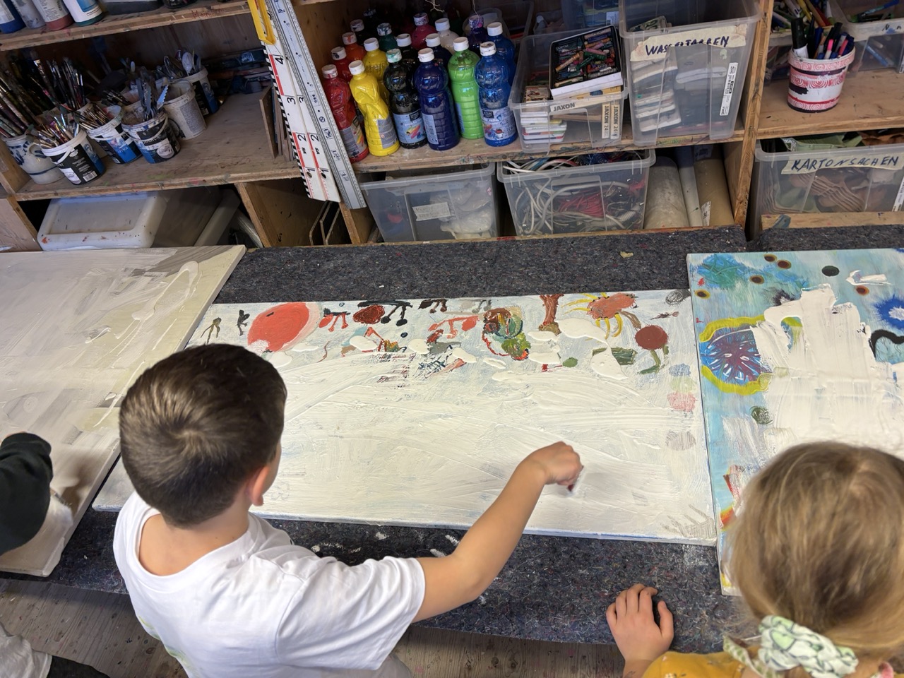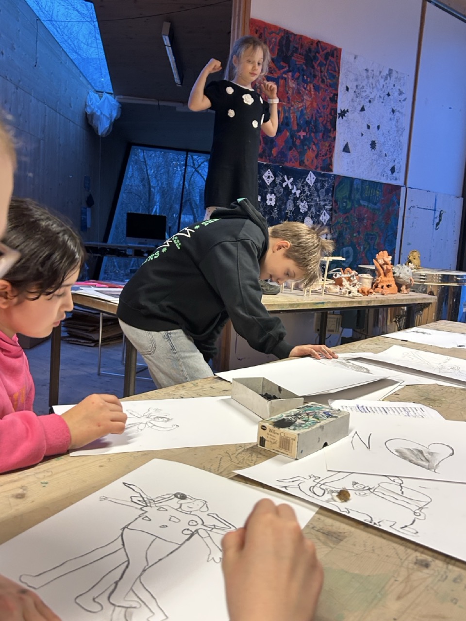 Kein Programm aber Raum, Material und Zeit. Wir schöpfen aus Interesse am Gestalten. Die Werkstatt ist unser Atelier, ob Kind, Jugendlicher, KünstlerIn oder ArchitektIn. Wir arbeiten miteinander oder jeder für sich, malen und bauen und lernen, wer wir sind und was wir tun.