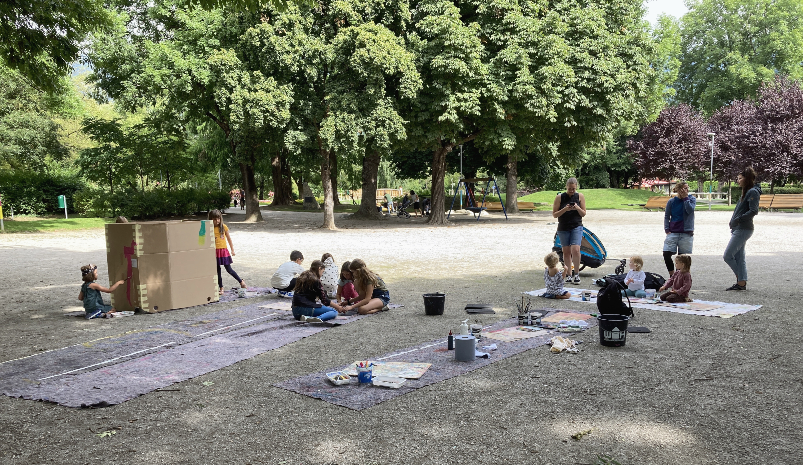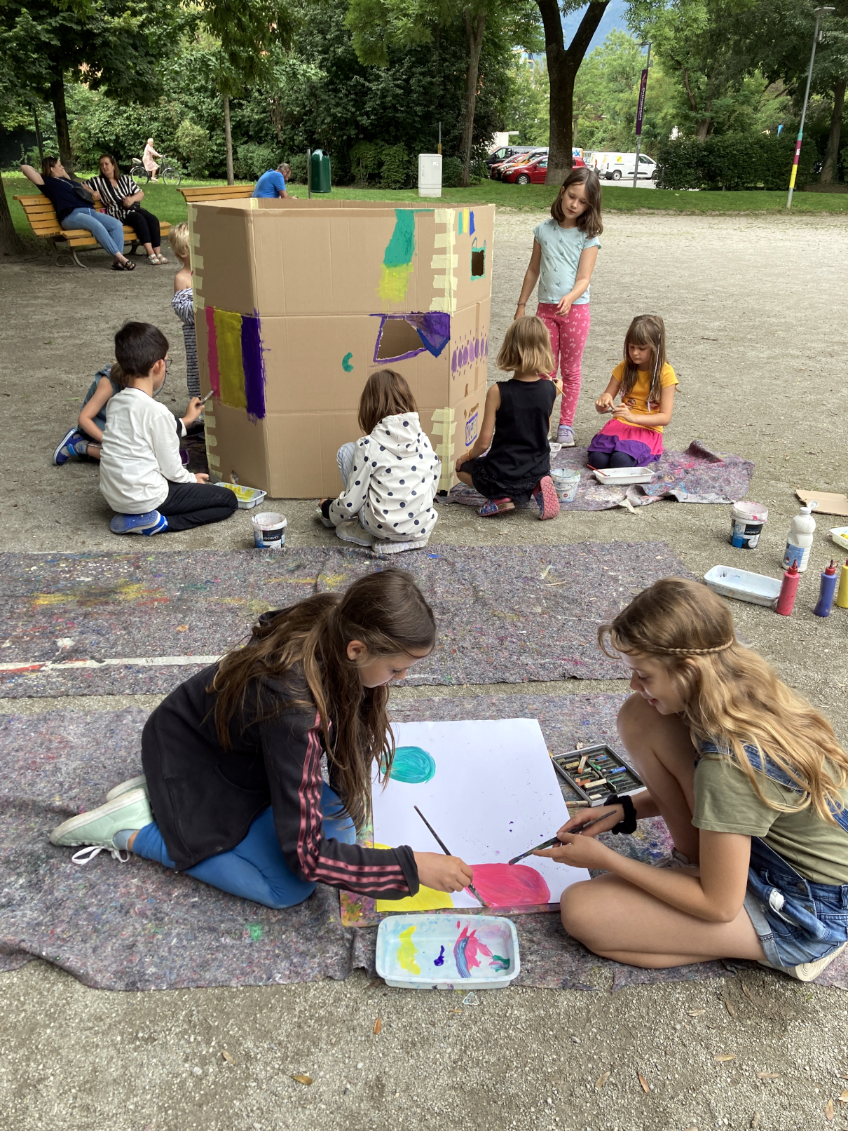 Ein PARKLAB – was kann das sein? Jedenfalls grün muss es sein, das ist sicher. Aber wie grün? Da kann auch bissl rot, so rosenrot zB. dabei sein, oder dottergelb, himmel- oder taubenblau, lila wie das Veilchen oder bunt schimmernd wie die unendlich vielen Wasserteilchen. Apropos Wasser – das ist mindestens so wichtig, wie das Grün rundherum, weil das eine ohne das andere gibts nicht. Das weiß jeder der forscht, aber der Pinsel hat’s gesagt und der weiß es aus Erfahrung. Also kommt, taucht ein ins PARKLAB und seht selbst, was es da alles zu tun gibt.