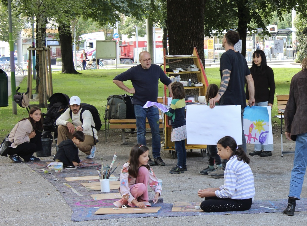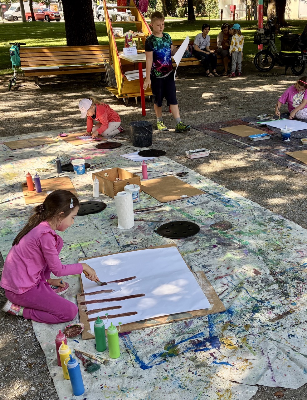 Ein PARKLAB – was kann das sein? Jedenfalls grün muss es sein, das ist sicher. Aber wie grün? Da kann auch bissl rot, so rosenrot zB. dabei sein, oder dottergelb, himmel- oder taubenblau, lila wie das Veilchen oder bunt schimmernd wie die unendlich vielen Wasserteilchen. Apropos Wasser – das ist mindestens so wichtig, wie das Grün rundherum, weil das eine ohne das andere gibts nicht. Das weiß jeder der forscht, aber der Pinsel hat’s gesagt und der weiß es aus Erfahrung. Also kommt, taucht ein ins PARKLAB und seht selbst, was es da alles zu tun gibt.